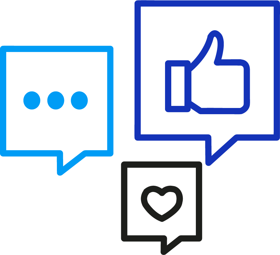 Diseñamos estrategias visuales que conectan y transmiten confianza usando azul marino, celeste y negro.